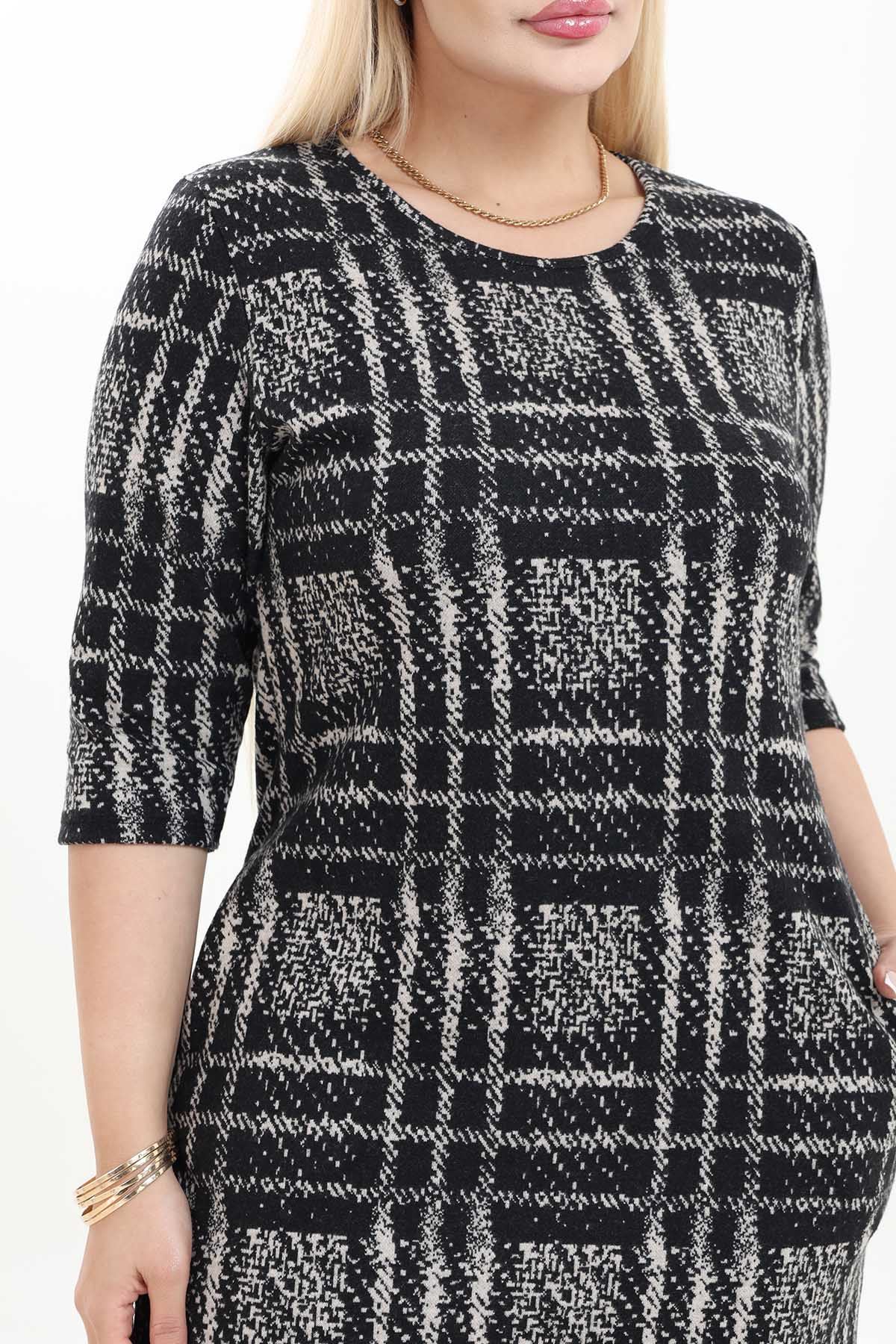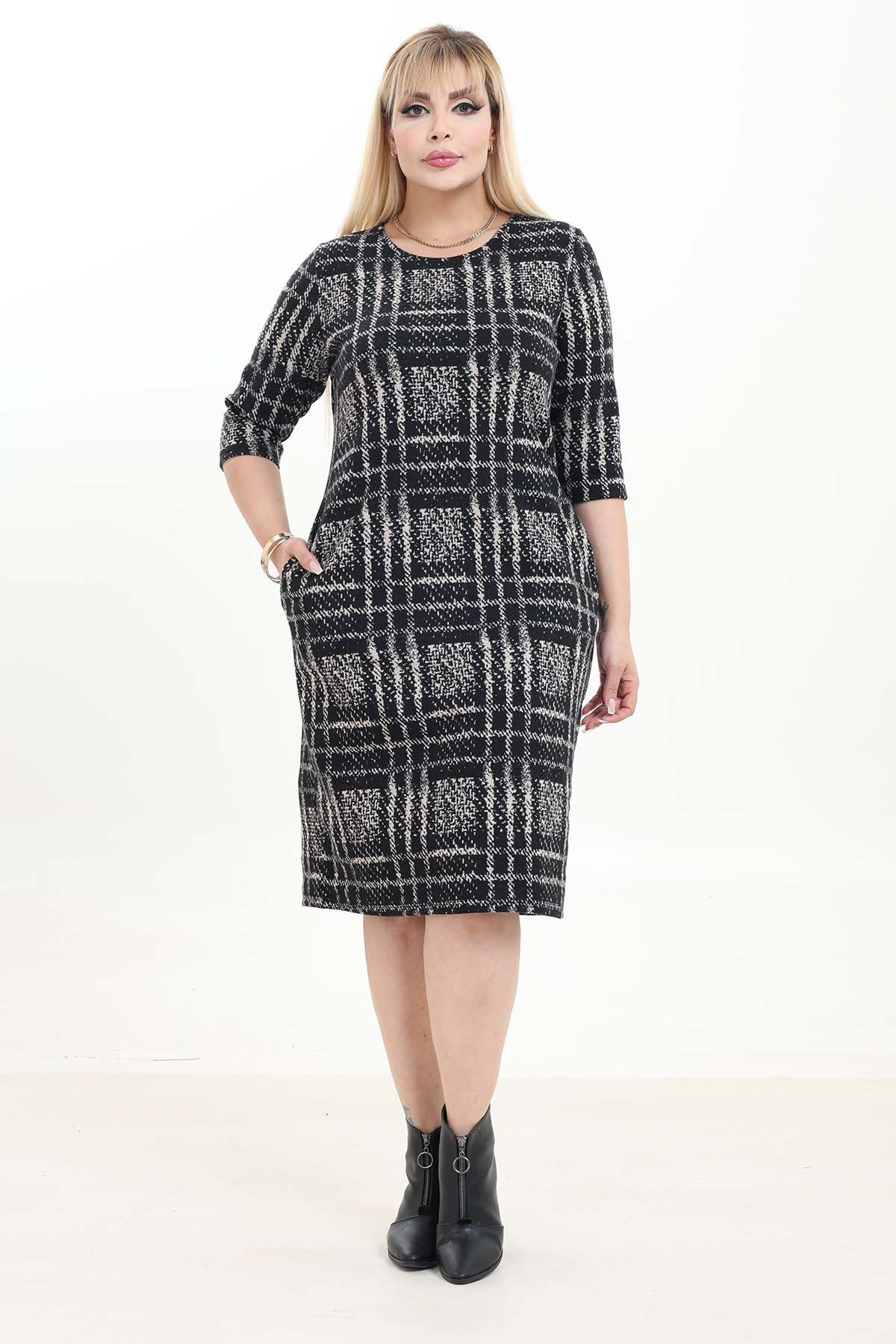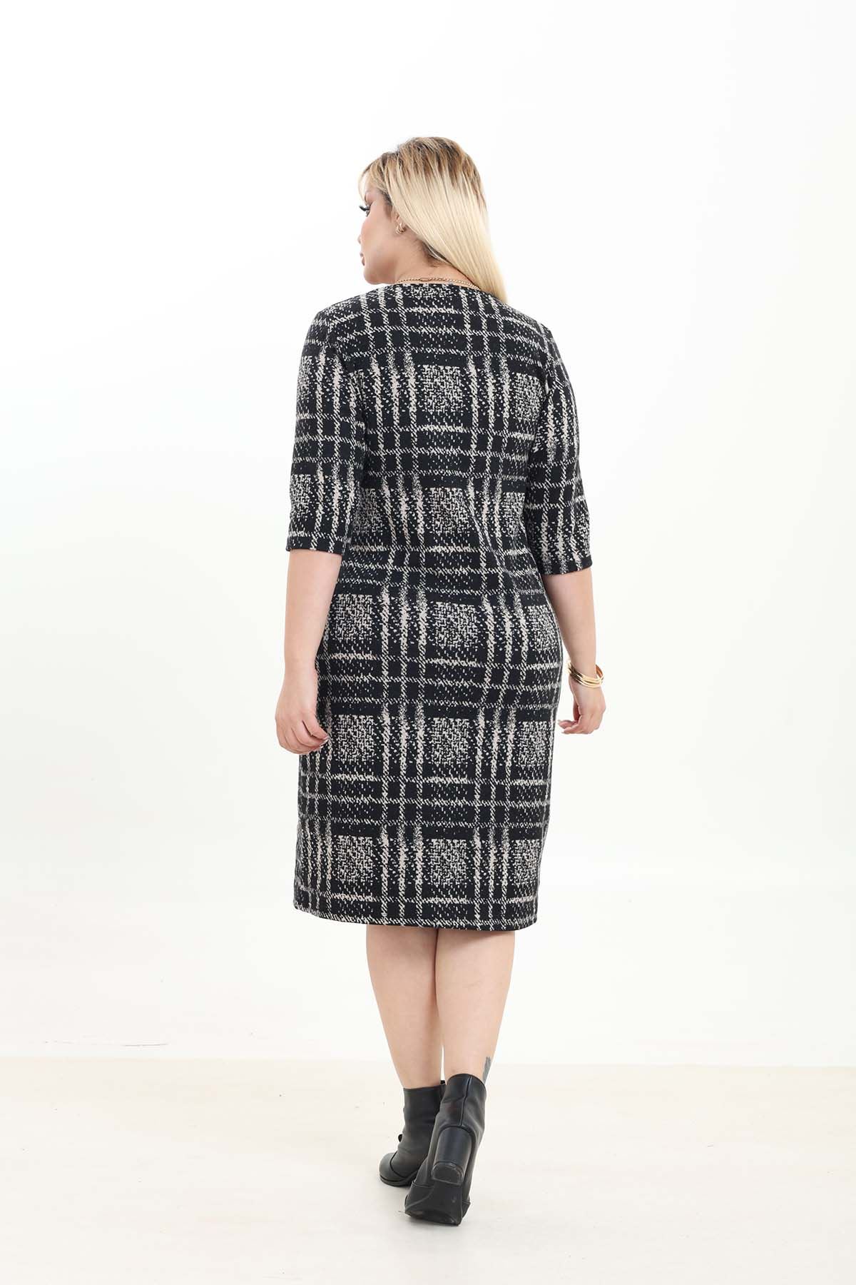 Çift Cepli Desenli Esnek Kışlık Büyük Beden Midi Elbise 17D-2746