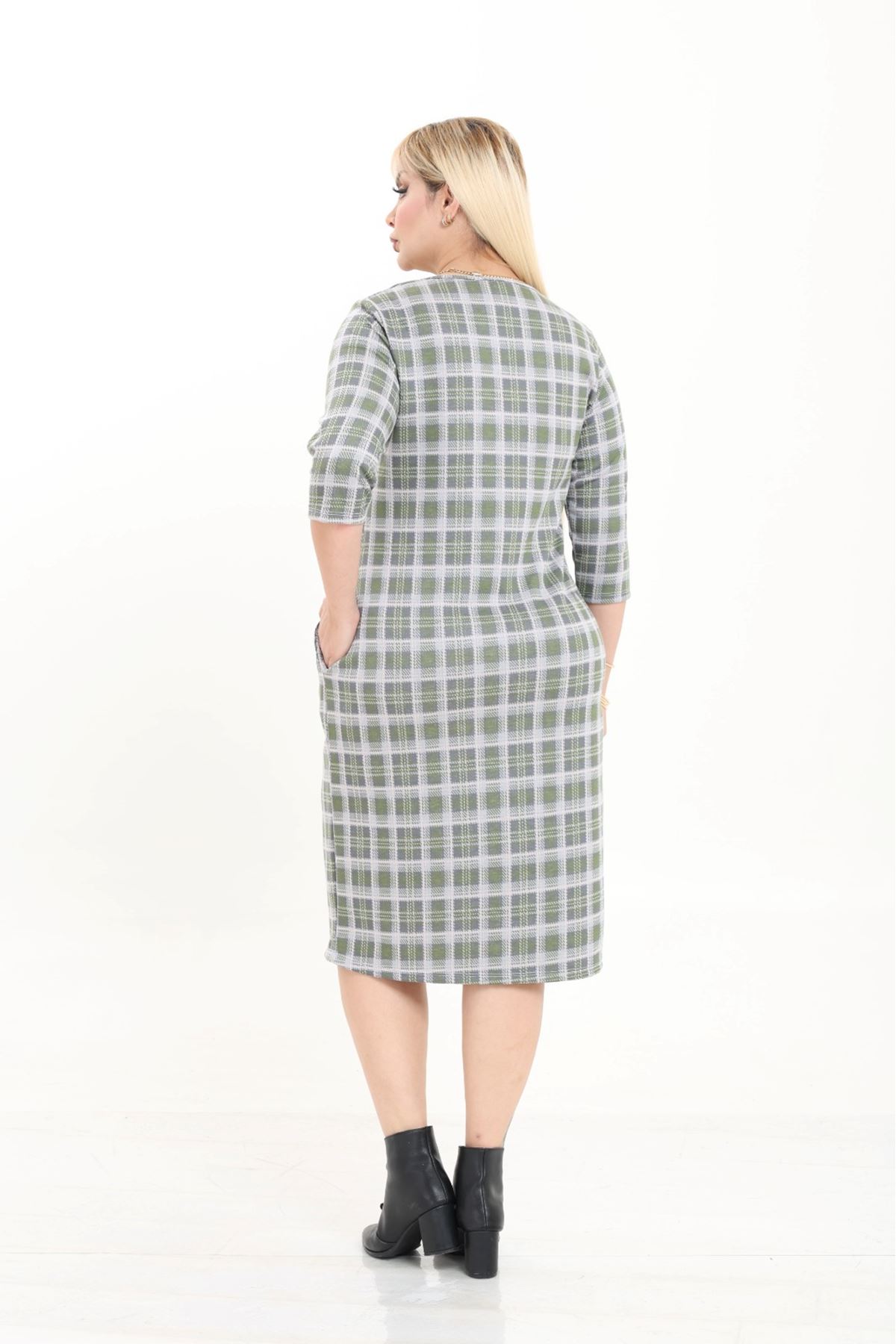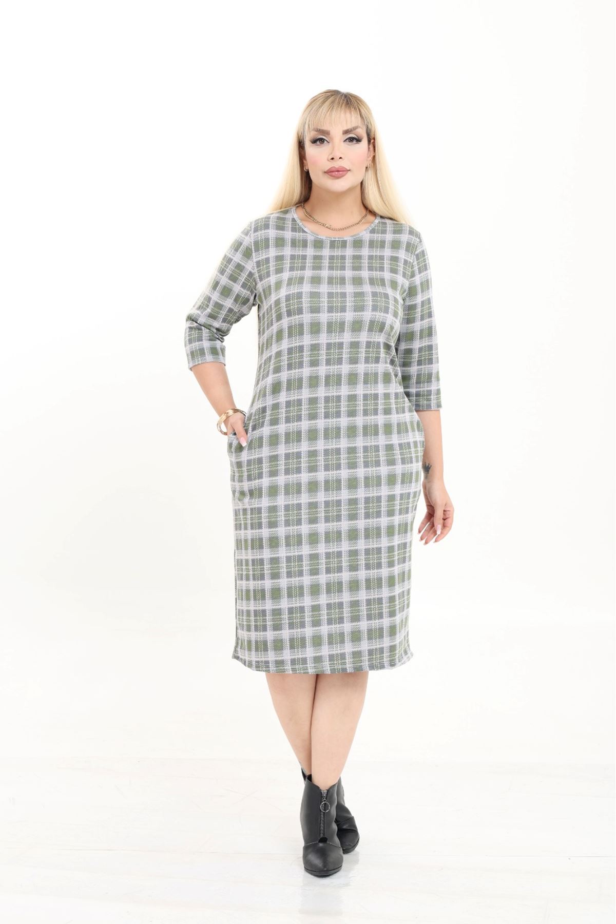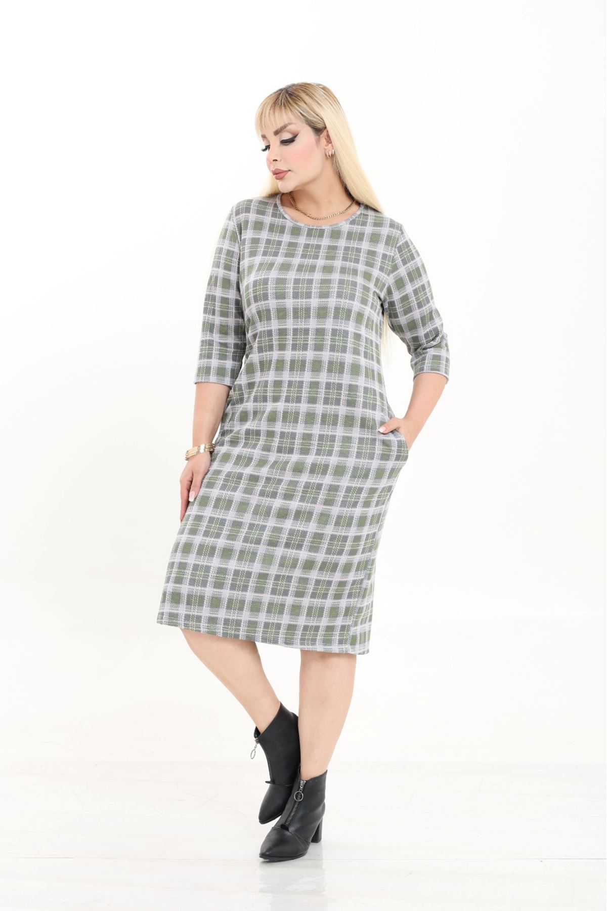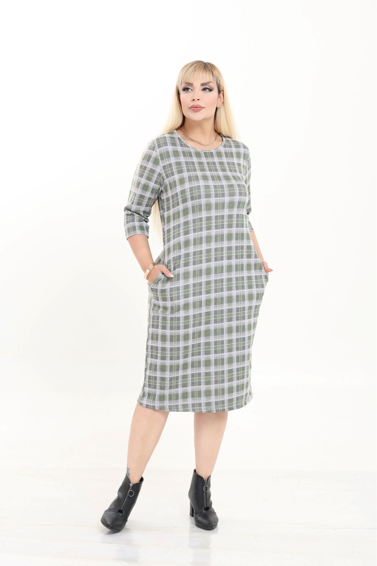 Çift Cepli Desenli Esnek Kışlık Büyük Beden Midi Elbise 20D-2728