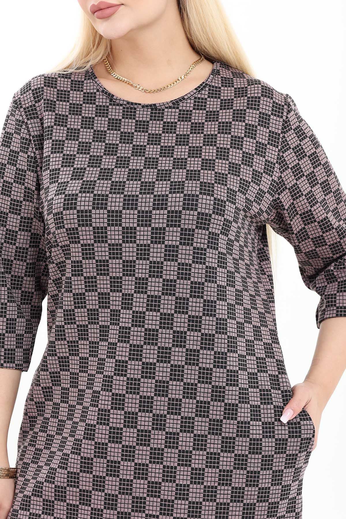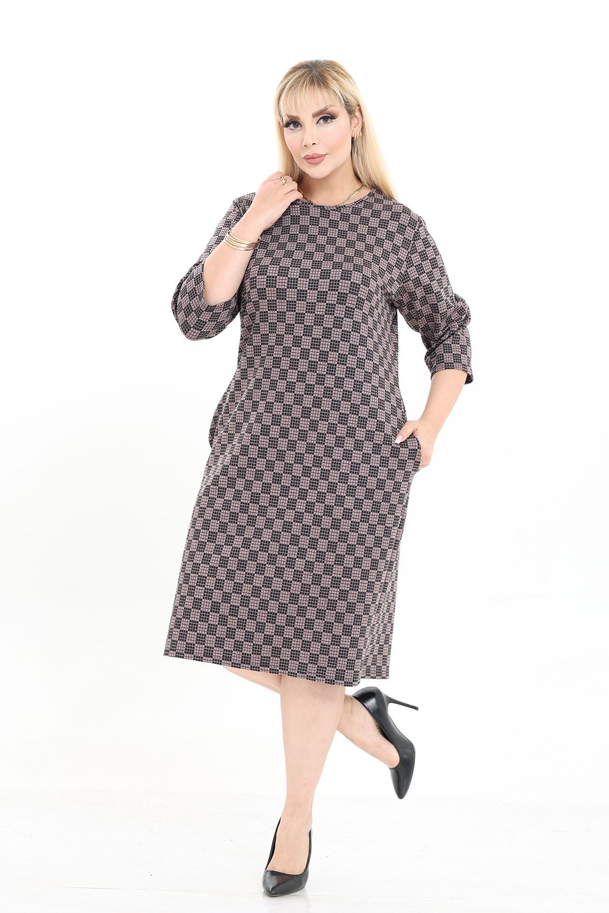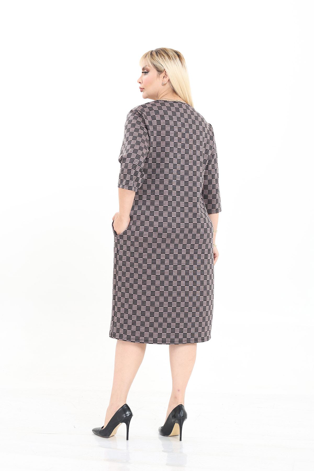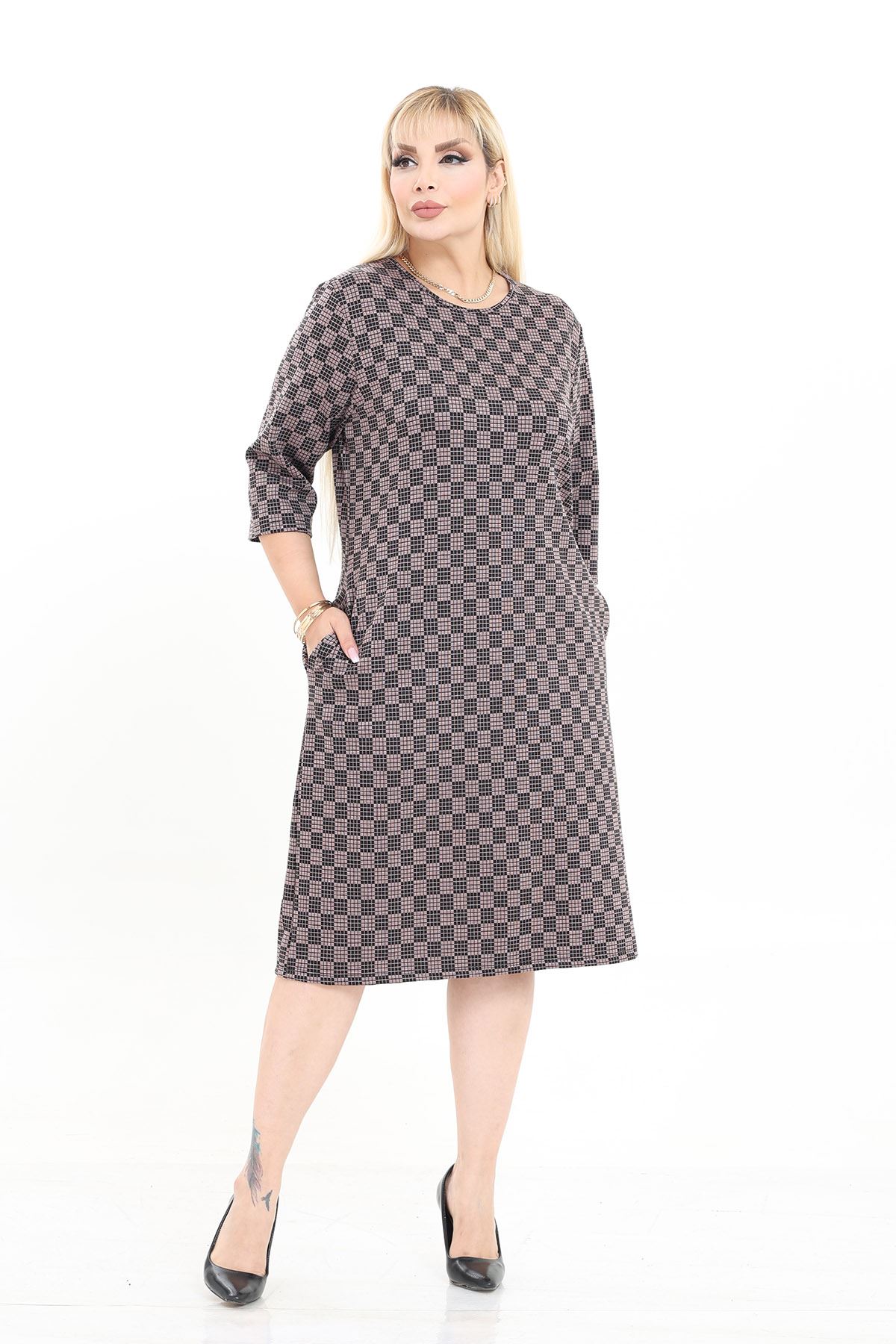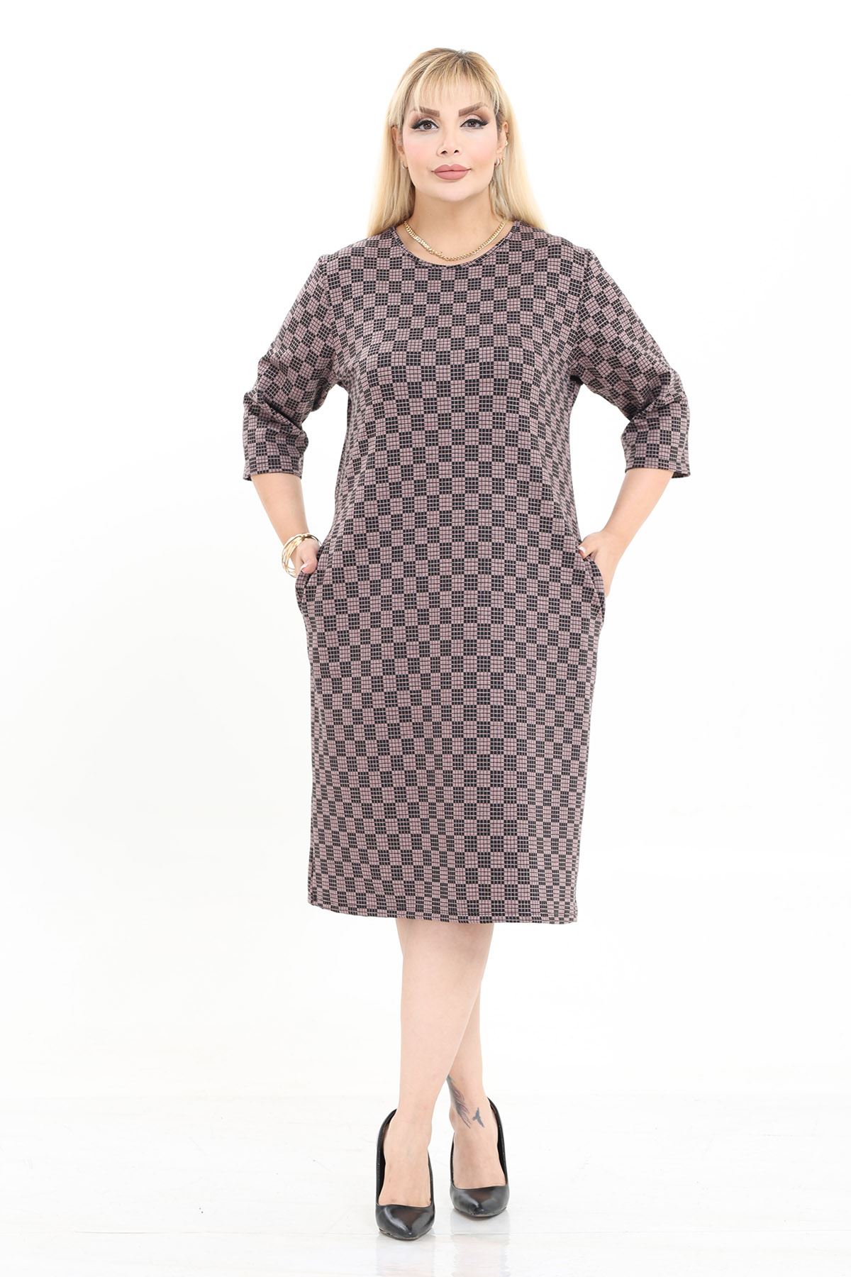 Çift Cepli Desenli Esnek Kışlık Büyük Beden Midi Elbise 38F-2726