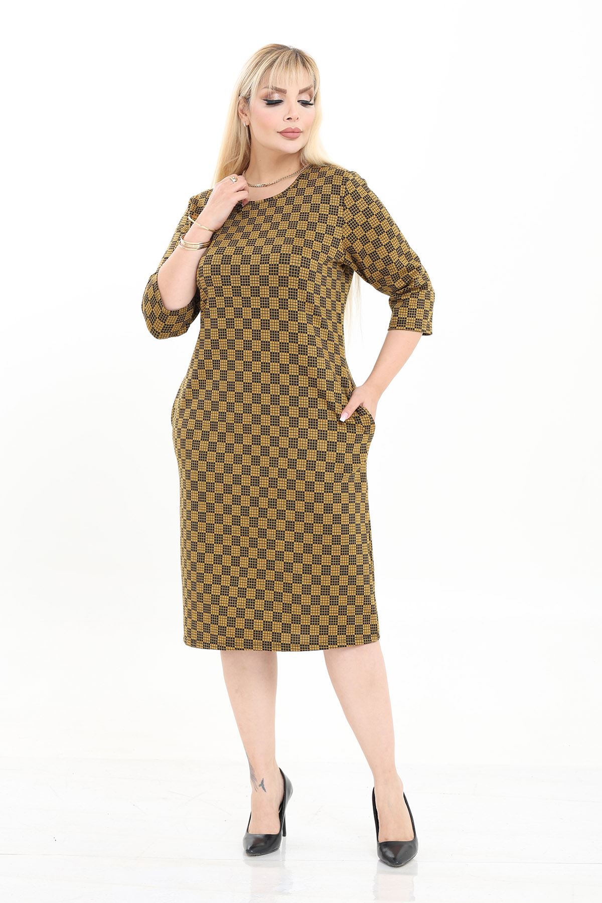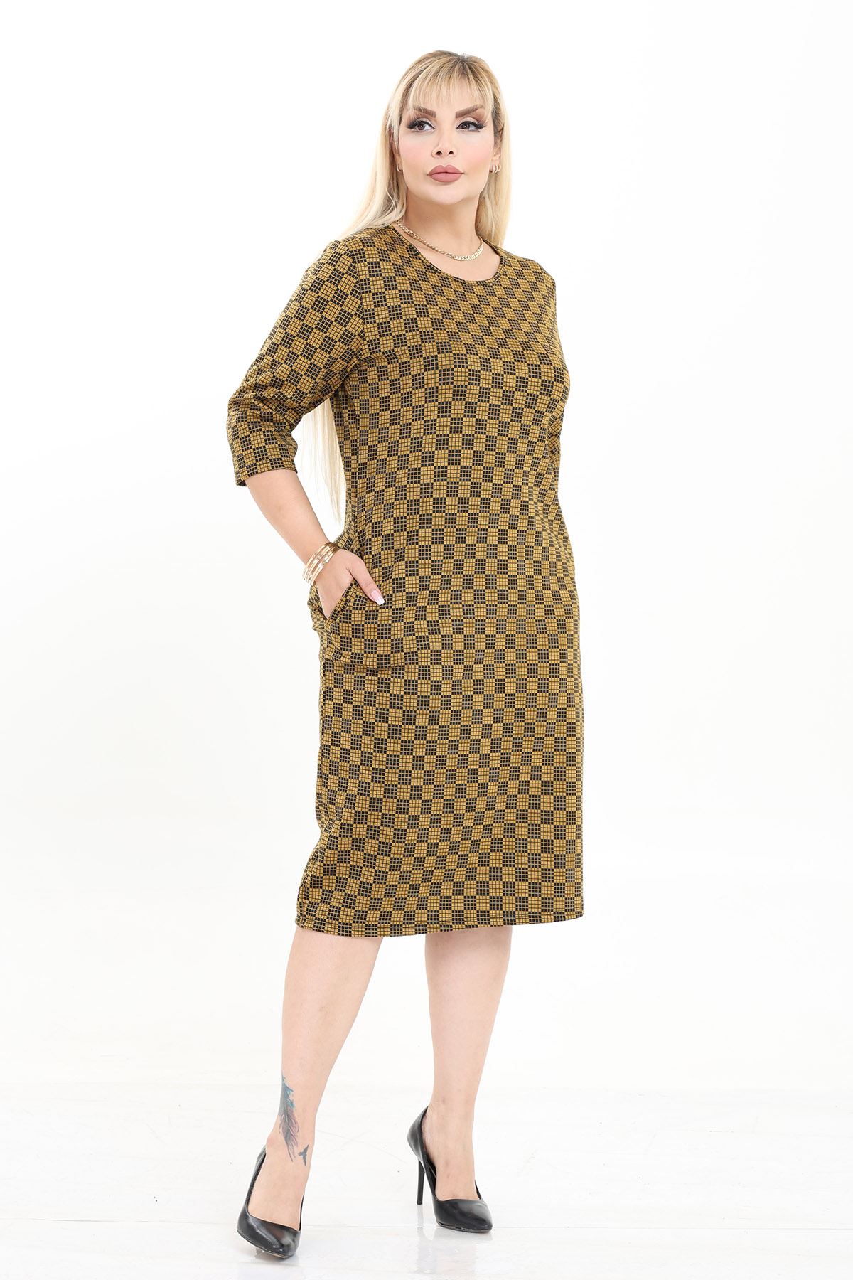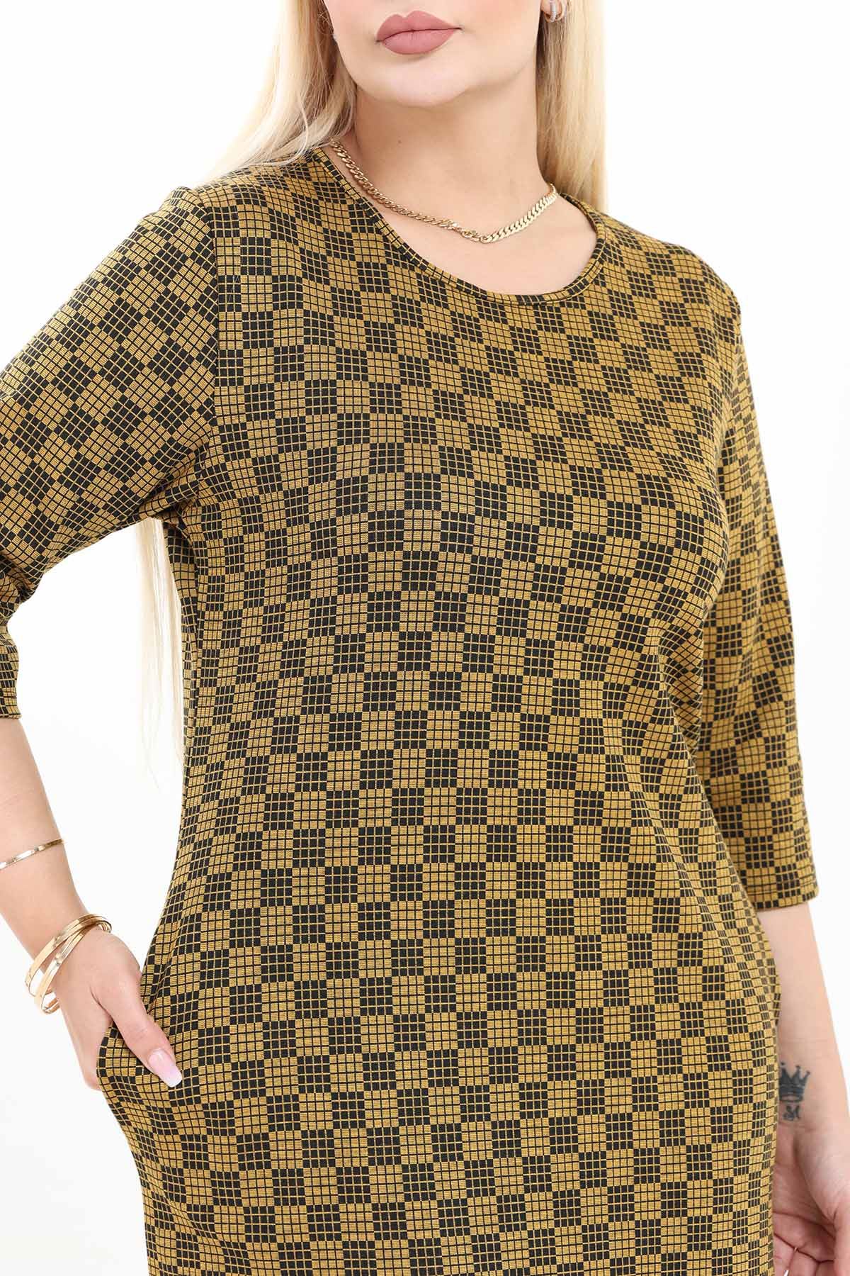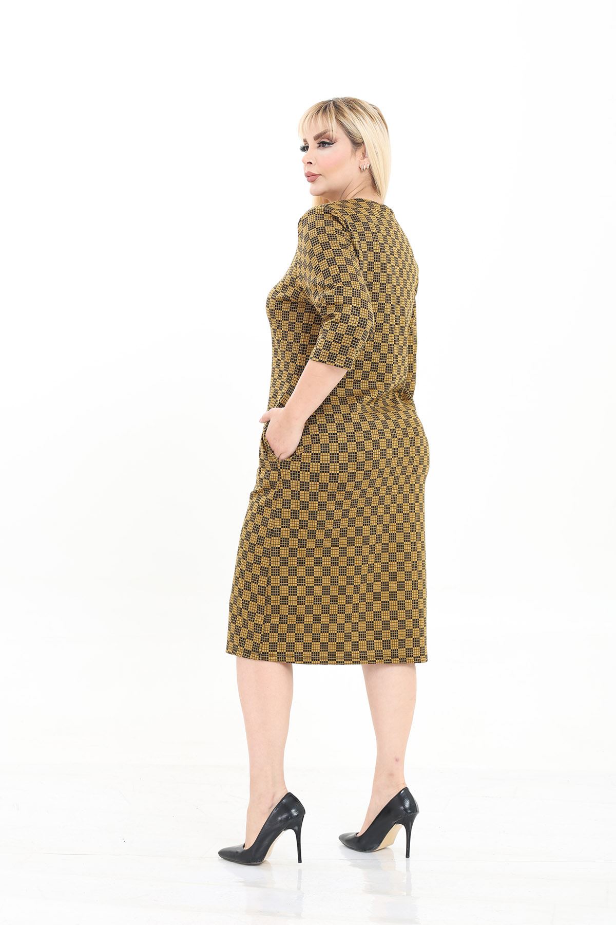 Çift Cepli Desenli Esnek Kışlık Büyük Beden Midi Elbise 18E-2729