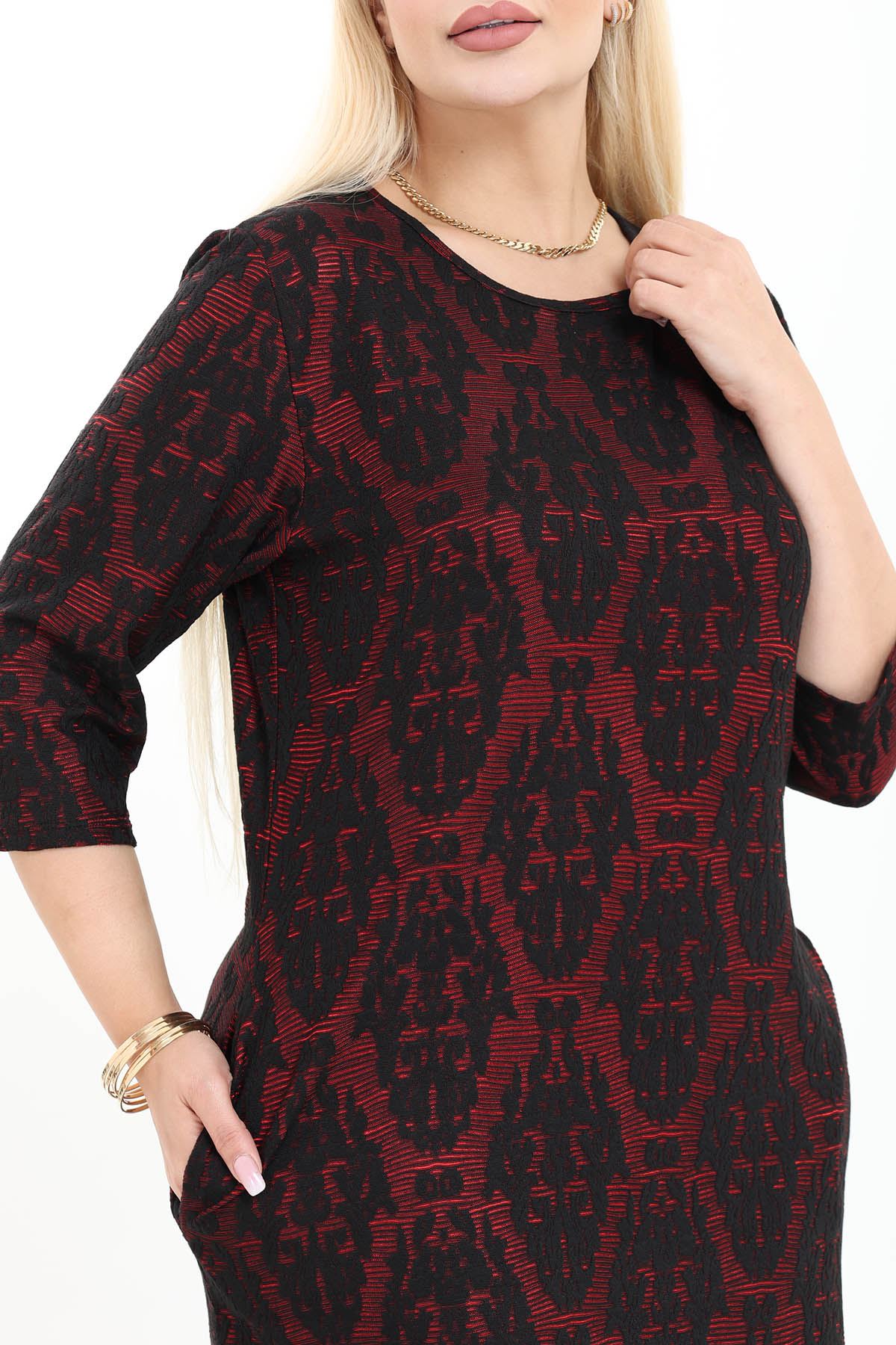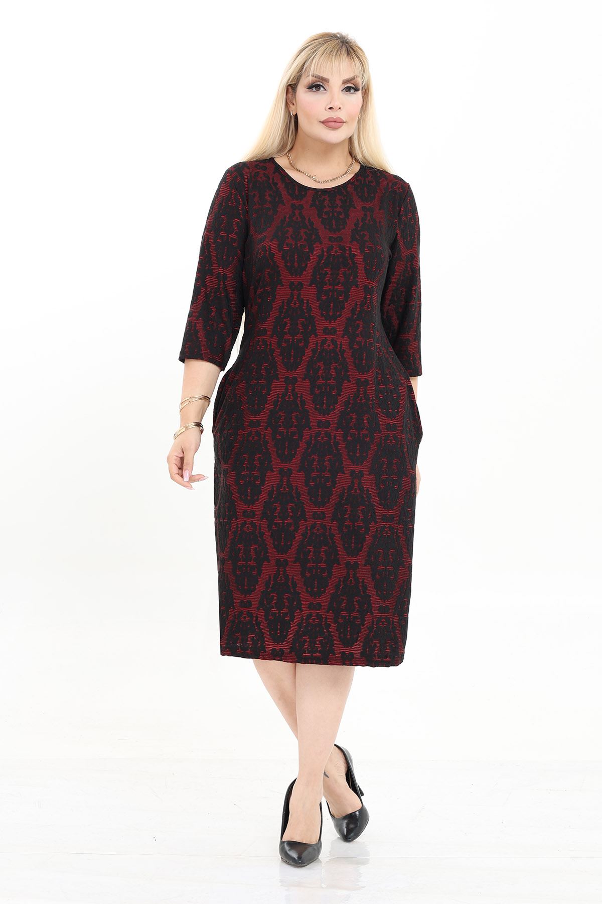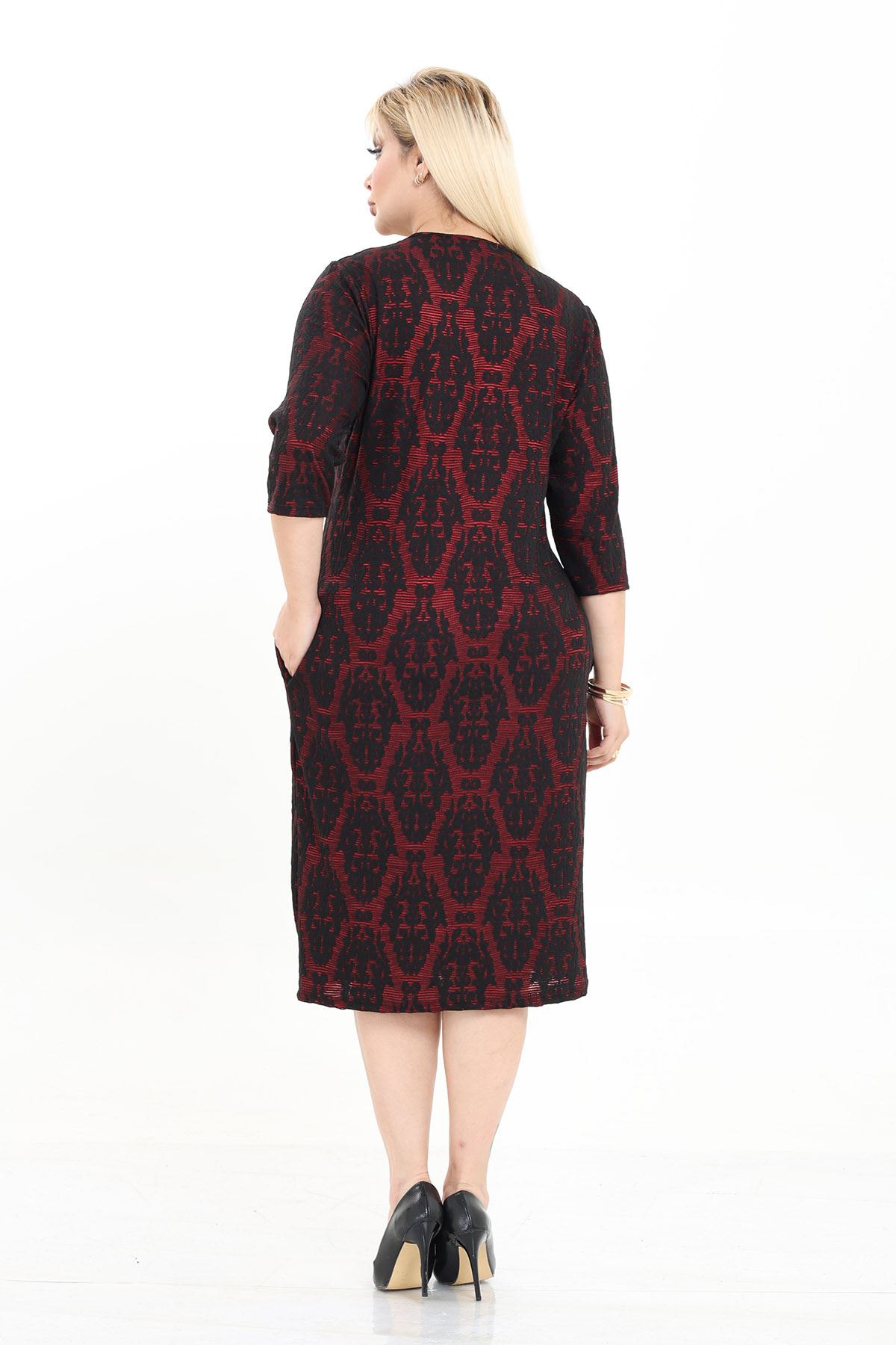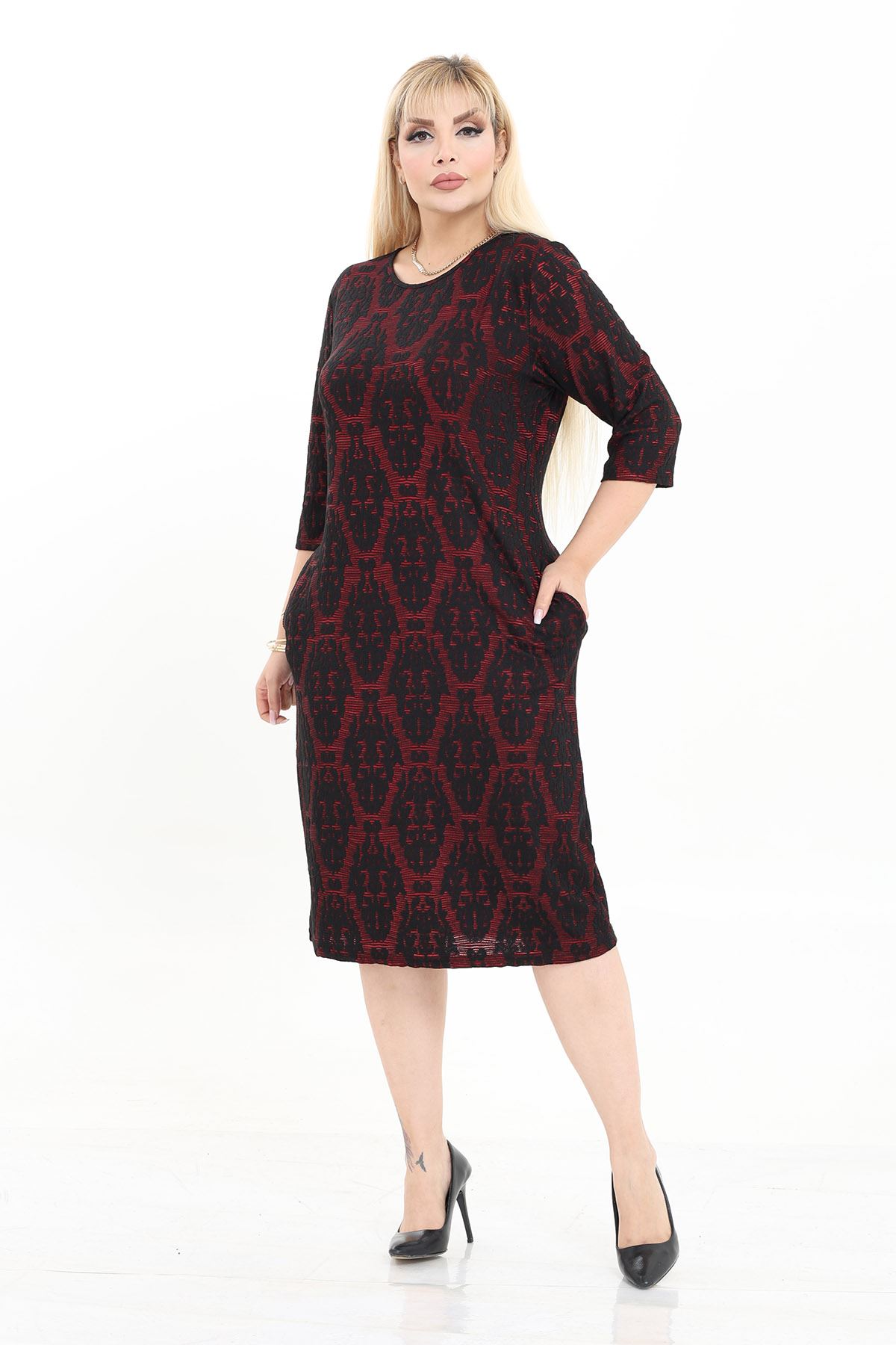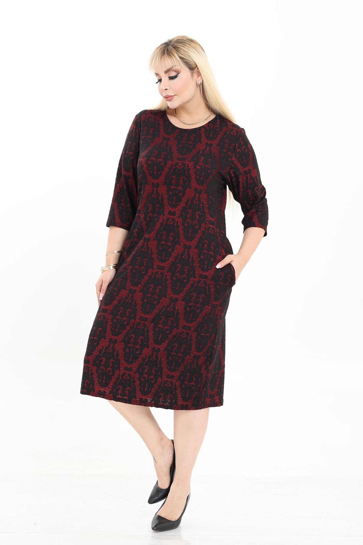 Çift Cepli Desenli Esnek Kışlık Büyük Beden Midi Elbise 9E-2721