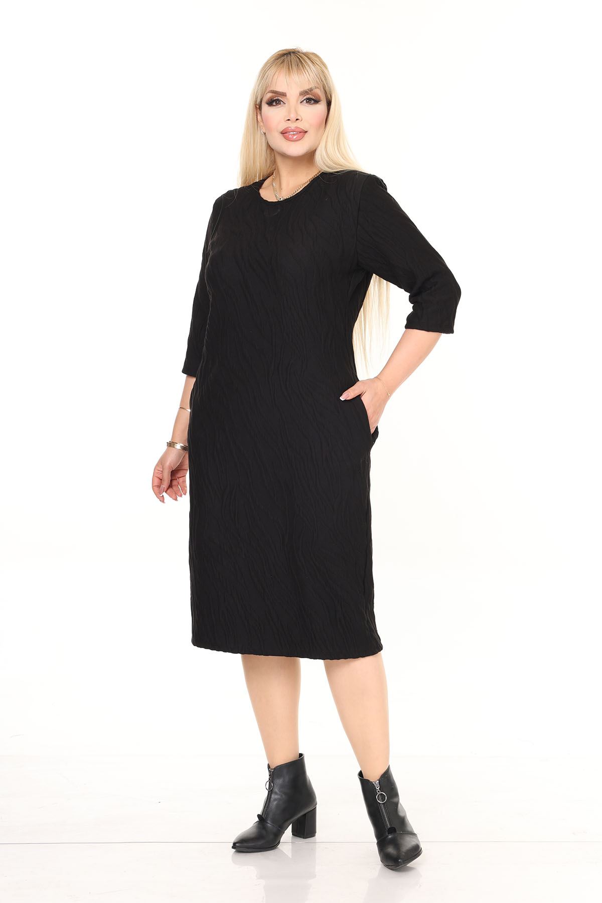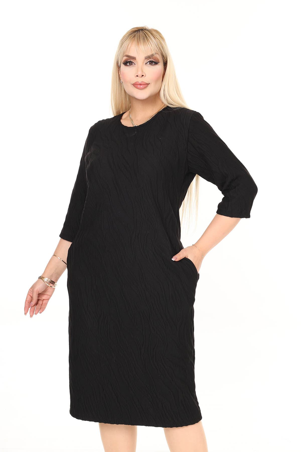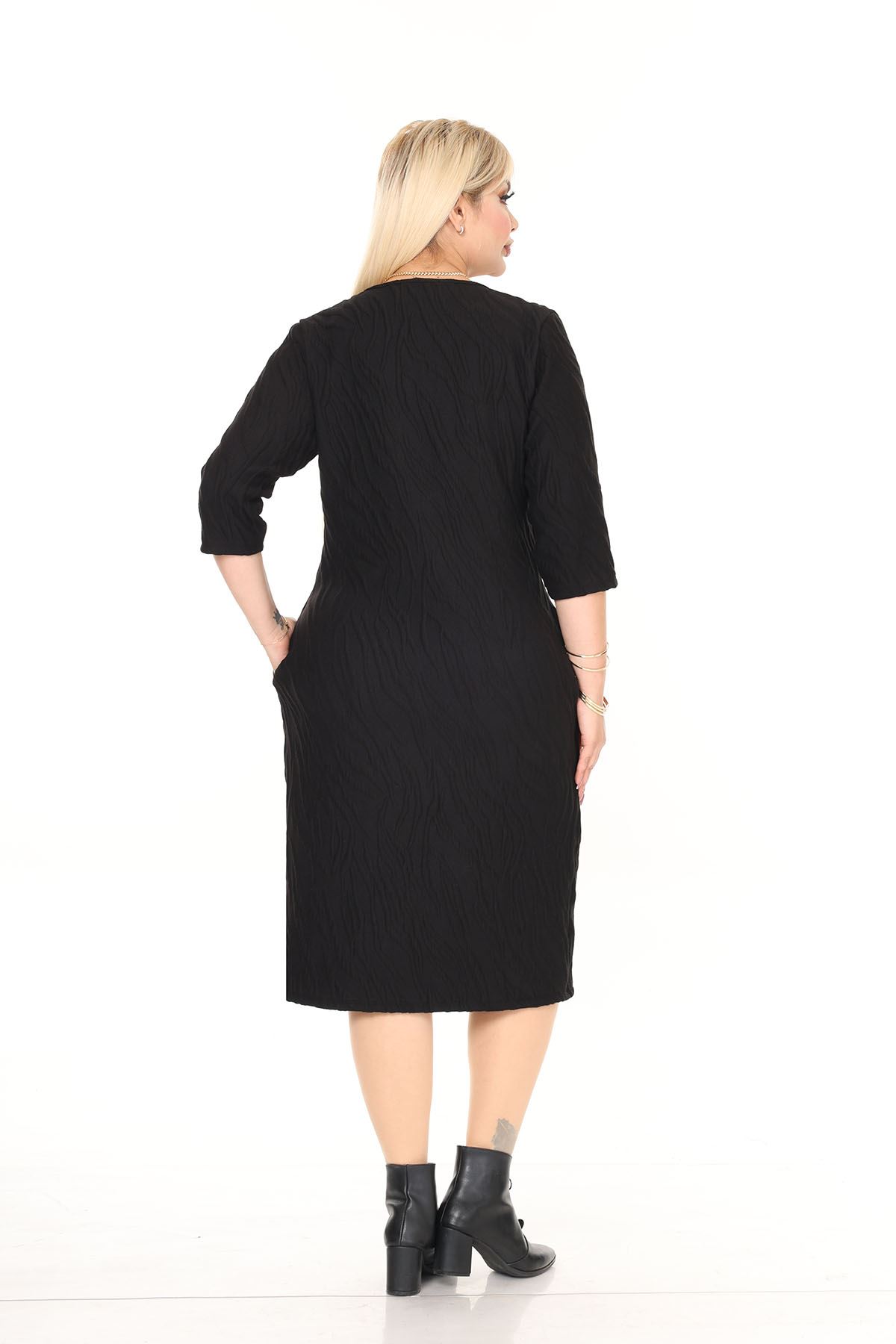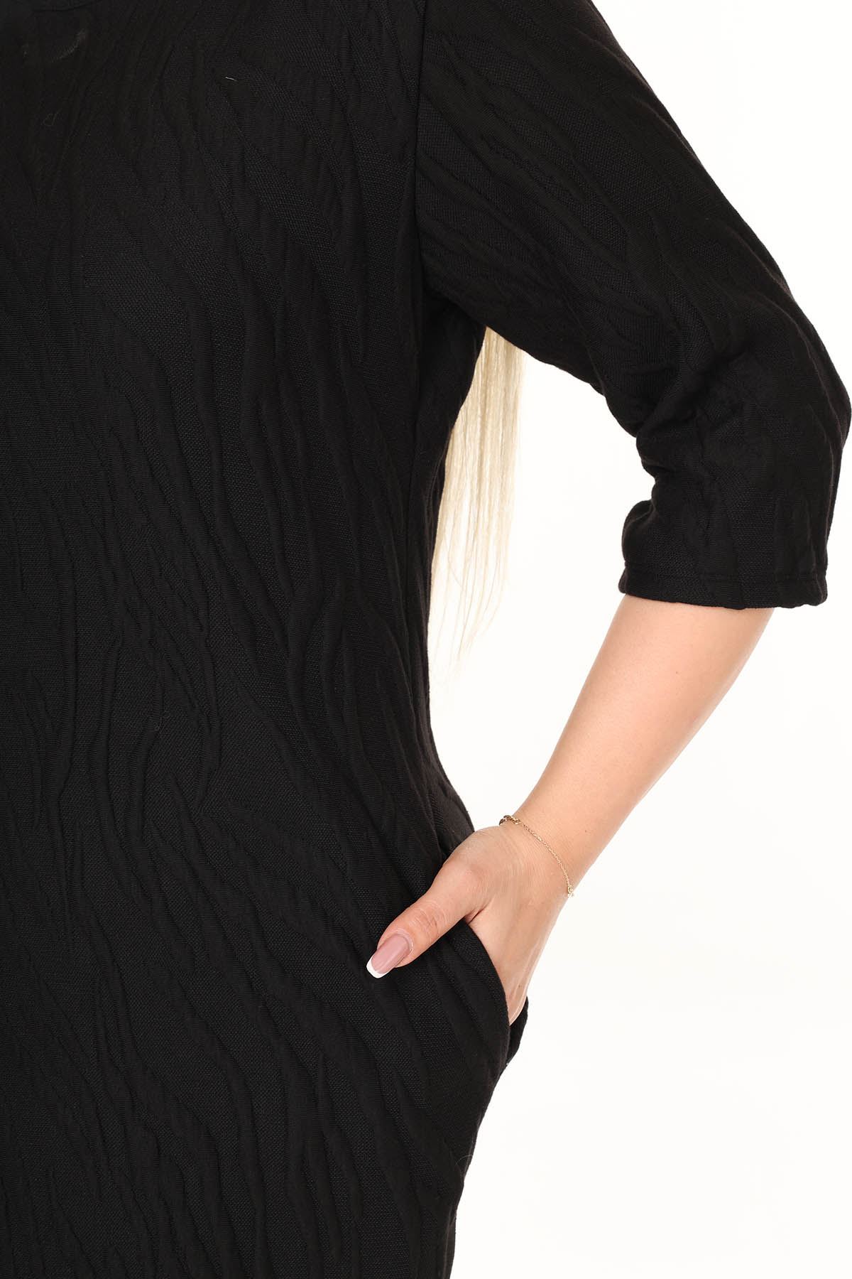 Çift Cepli Desenli Esnek Kışlık Büyük Beden Midi Elbise 9F-2731