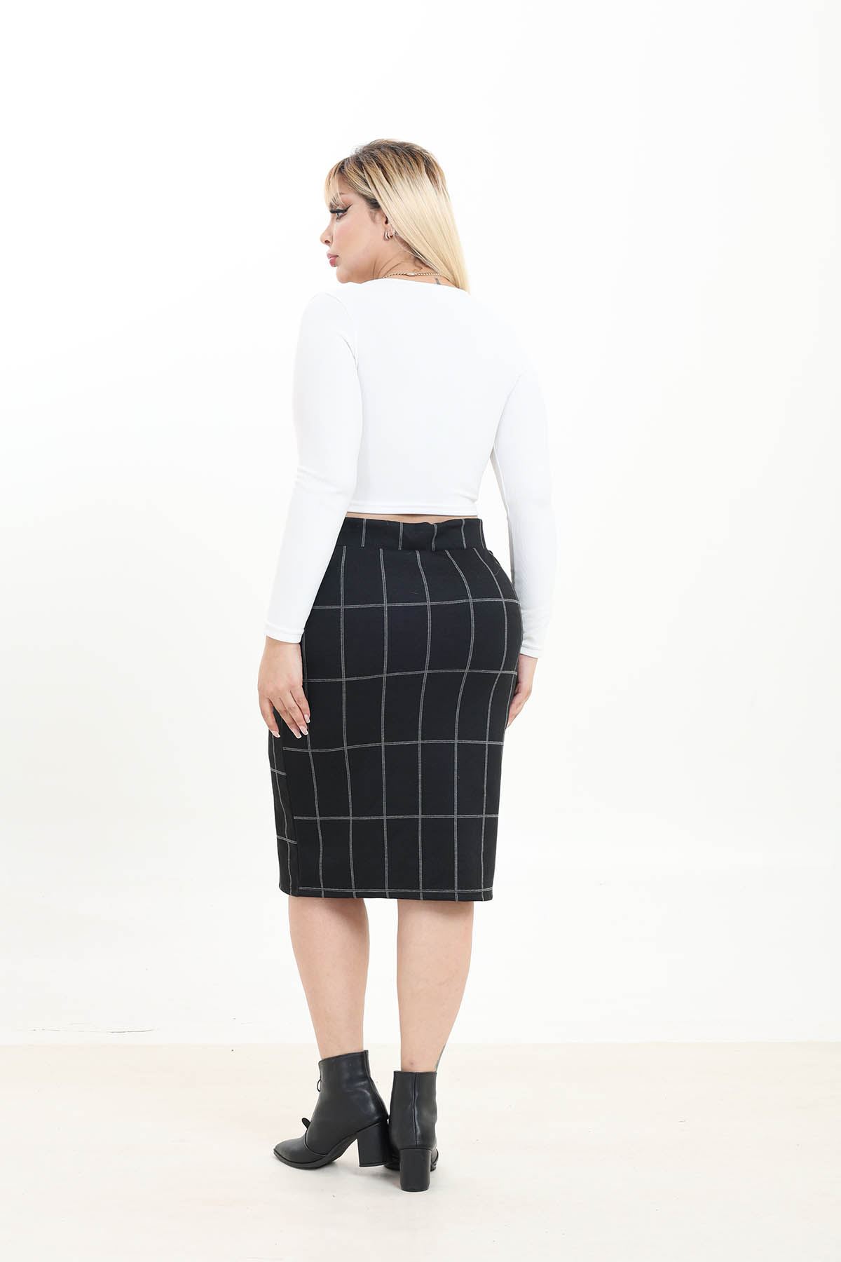 The skirt is made of stretchy jacquard fabric. Waist is elastic, Unlined and does not show through
