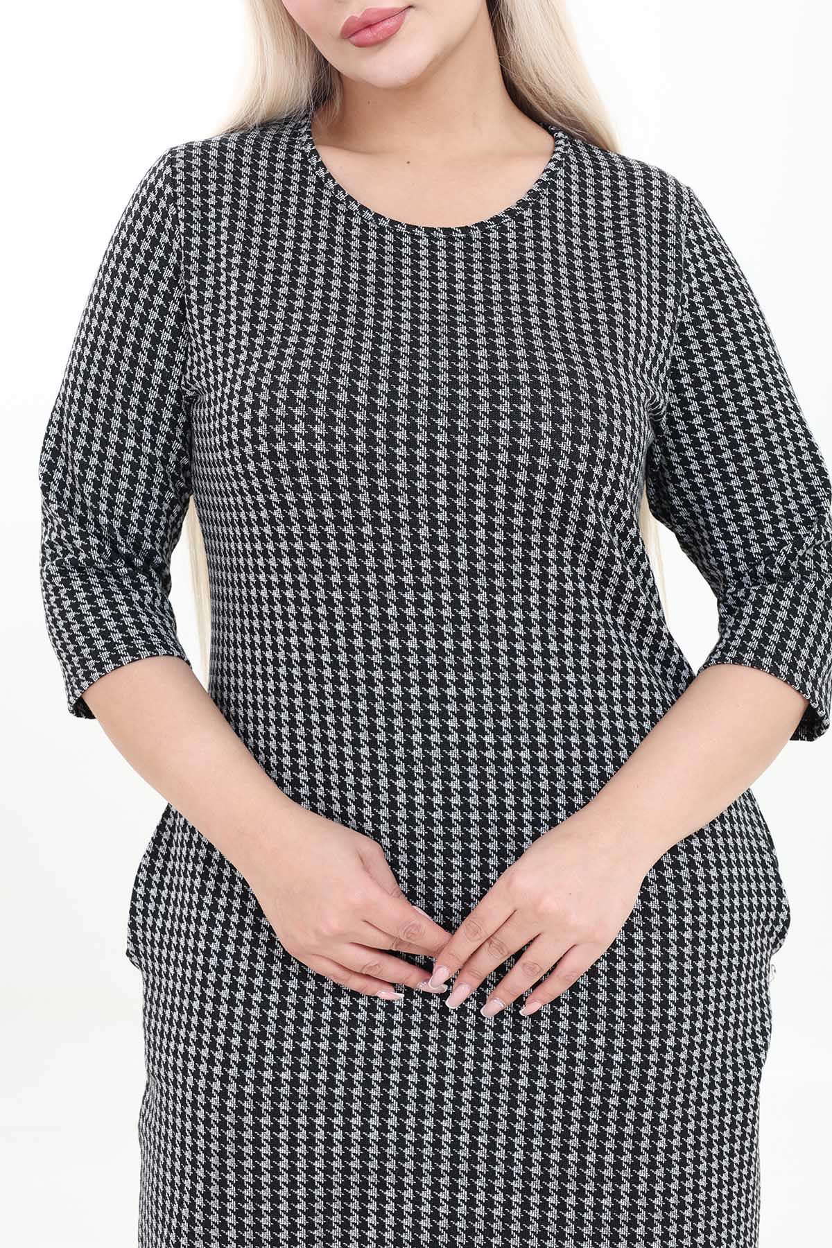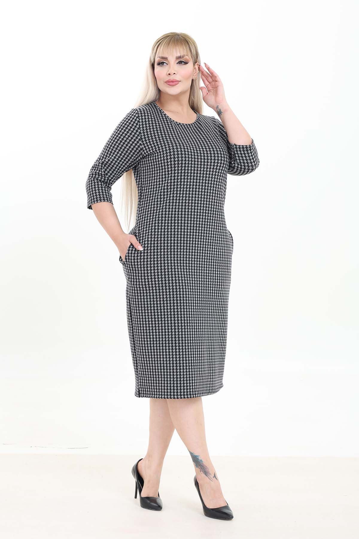 Çift Cepli Desenli Esnek Kışlık Büyük Beden Midi Elbise 16C-2758