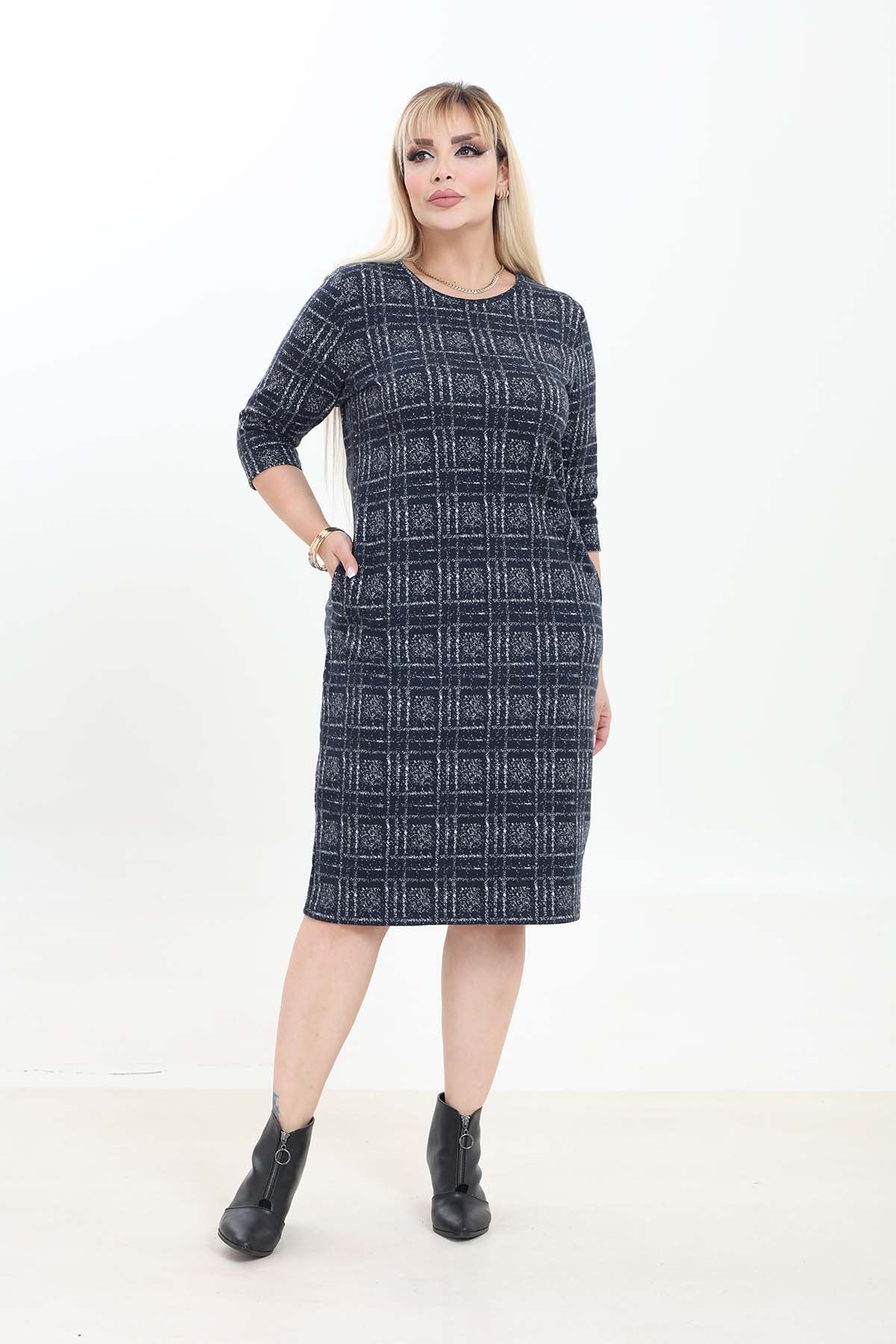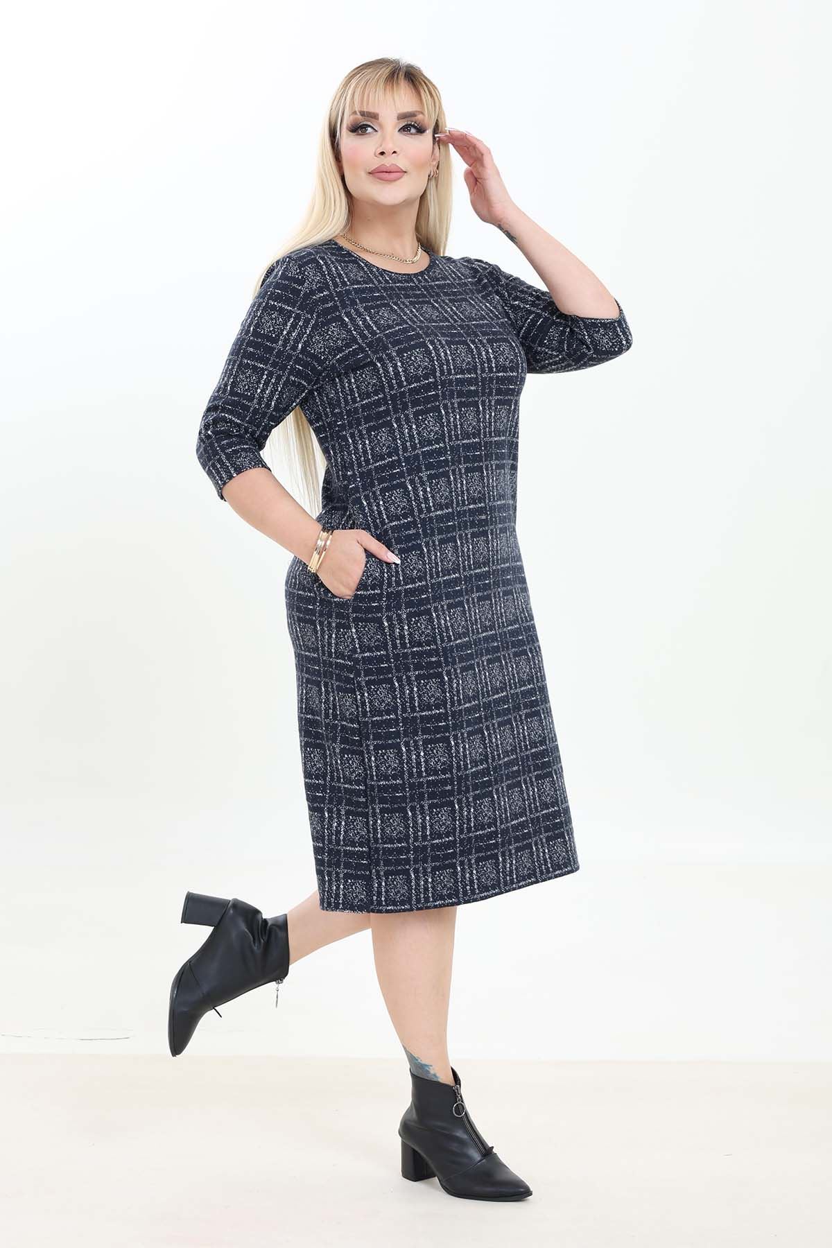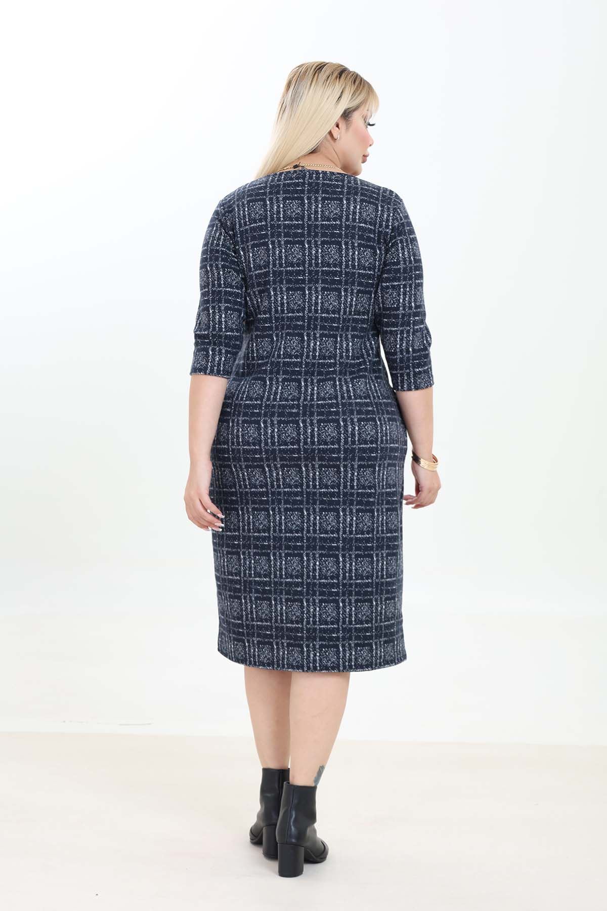 Çift Cepli Desenli Esnek Kışlık Büyük Beden Midi Elbise 21D-2756