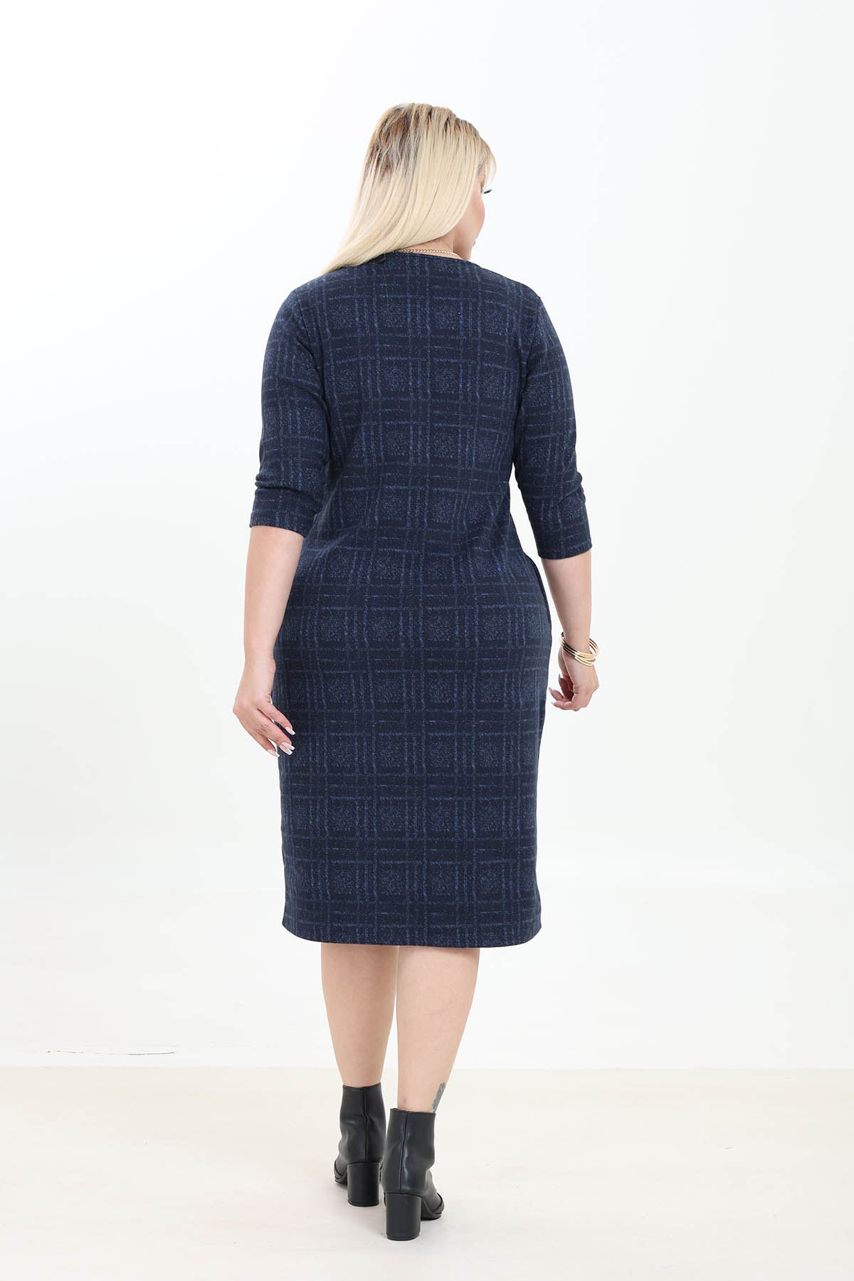 Çift Cepli Desenli Esnek Kışlık Büyük Beden Midi Elbise 29C-2757